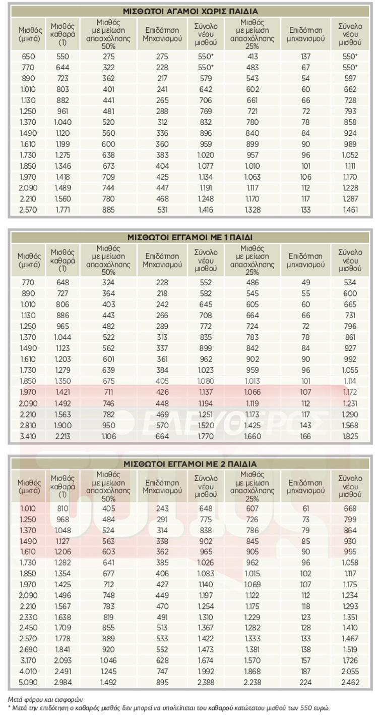 * Σε περίπτωση που οι καθαρές αποδοχές, μετά την επιδότηση 60%, υπολείπονται του καθαρού νομοθετημένου κατώτατου μισθού (650 ευρώ) ή ημερομισθίου (29,04 ευρώ), η διαφορά αναπληρώνεται από τον Κρατικό Προϋπολογισμό. Με την έξτρα αυτή ενίσχυση η συνολική επιδότηση της απώλειας μισθού ως τα 650 ευρώ θα είναι στο 100%, ενώ για μισθούς των 700 ευρώ, η επιδότηση θα καλύπτει το 93% της απώλειας.