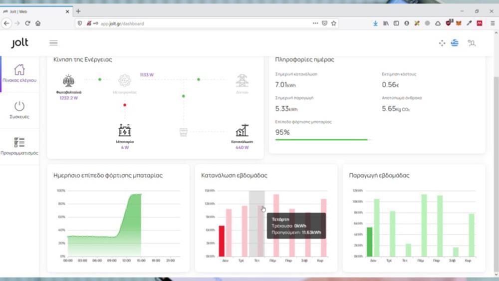Η επικοινωνία όλων των επί μέρους τμημάτων του εξοπλισμού (smart devices, pv inverters, battery inverters, ev chargers κτλ.) και ο χειρισμός τους, πραγματοποιείται από το κεντρικό σύστημα ενεργειακής διαχείρισης του JOLT, ενώ μέσω της εφαρμογής JOLT για smartphones, ο χρήστης μπορεί να παρακολουθεί τις καταναλώσεις του και να δίνει εντολές στη συσκευή που επιθυμεί. Για παράδειγμα μπορεί να φορτίσει τη μπαταρία, να ανάψει το ηλεκτρικό θερμοσίφωνο, να απενεργοποιήσει απομακρυσμένα ένα κλιματιστικό, να προγραμματίσει τη φόρτιση του ηλεκτρικού του οχήματος.