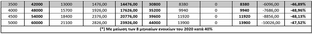 5 Εξαίρεση, υπό προϋποθέσεις, από τα τεκμήρια διαβίωσης. Κατά την εκκαθάριση των φετινών δηλώσεων φορολογίας εισοδήματος, θα απαλλαγούν πλήρως από τα τεκμήρια διαβίωσης όλοι οι ιδιοκτήτες εκμισθούμενων ακινήτων που υποχρεώθηκαν να εισπράξουν ενοίκια μειωμένα κατά 40% έστω και για έναν από τους μήνες Μάρτιο έως Αύγουστο και Νοέμβριο έως Δεκέμβριο 2020, καθώς και όσοι εξαναγκάστηκαν να εισπράξουν ενοίκια μειωμένα τουλάχιστον κατά 30% έστω και σε έναν από τους μήνες Σεπτέμβριο και Οκτώβριο του 2020, εφόσον υπέβαλαν έστω και μία εγκεκριμένη δήλωση COVID.