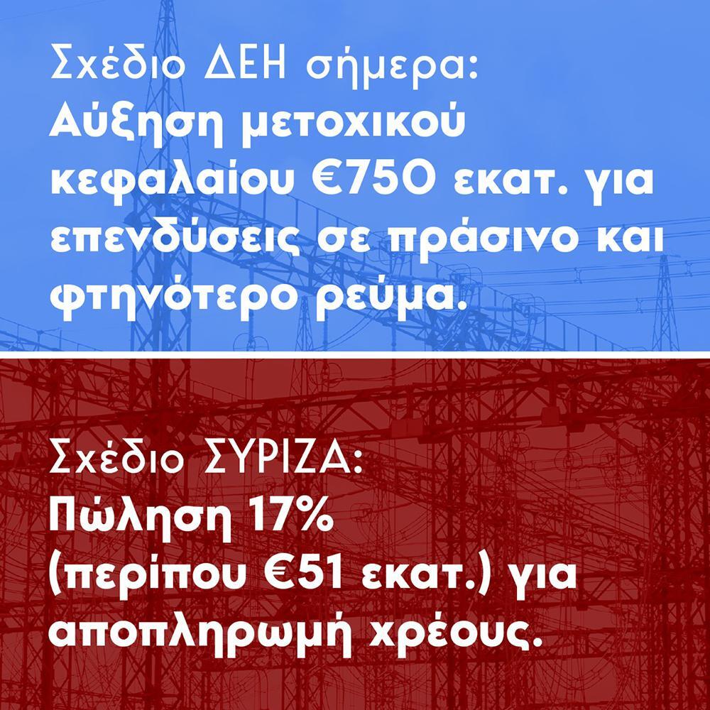 Ο ΣΥΡΙΖΑ ουσιαστικά καταγγέλλει τον εαυτό του, διότι είναι η δική του κυβέρνηση που είχε αποφασίσει την πώληση του 17% της ΔΕΗ. Τότε ο ΣΥΡΙΖΑ δεν το θεωρούσε ξεπούλημα; Αν κάποιος ξεπουλούσε τη ΔΕΗ ήταν η κυβέρνηση ΣΥΡΙΖΑ που απαξίωσε την επιχείρηση, και τη μετοχή της, την οδήγησε σε επιζήμιες δεσμεύσεις και την έφτασε ένα βήμα πριν την χρεοκοπία, όπως έλεγε η ίδια η έκθεση του ορκωτού ελεγκτή της εταιρείας τον Απρίλιο 2019.