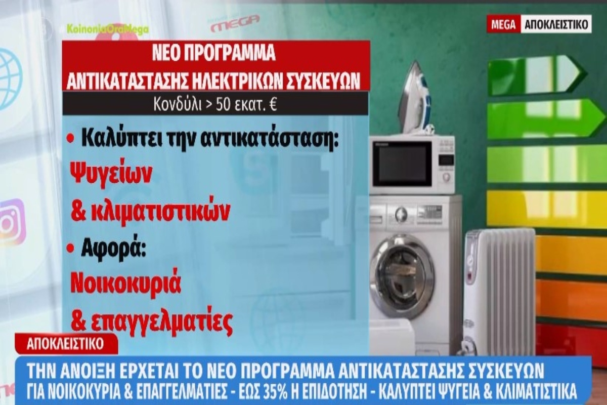 Παράλληλα το πρόγραμμα θα συνδεθεί με την απόσυρση παλαιών συσκευών. Μέσω του προγράμματος θα μπορούν να αποσυρθούν και να αντικατασταθούν με επιδότηση συσκευές, και συγκεκριμένα κλιματιστικά και ψυγεία.