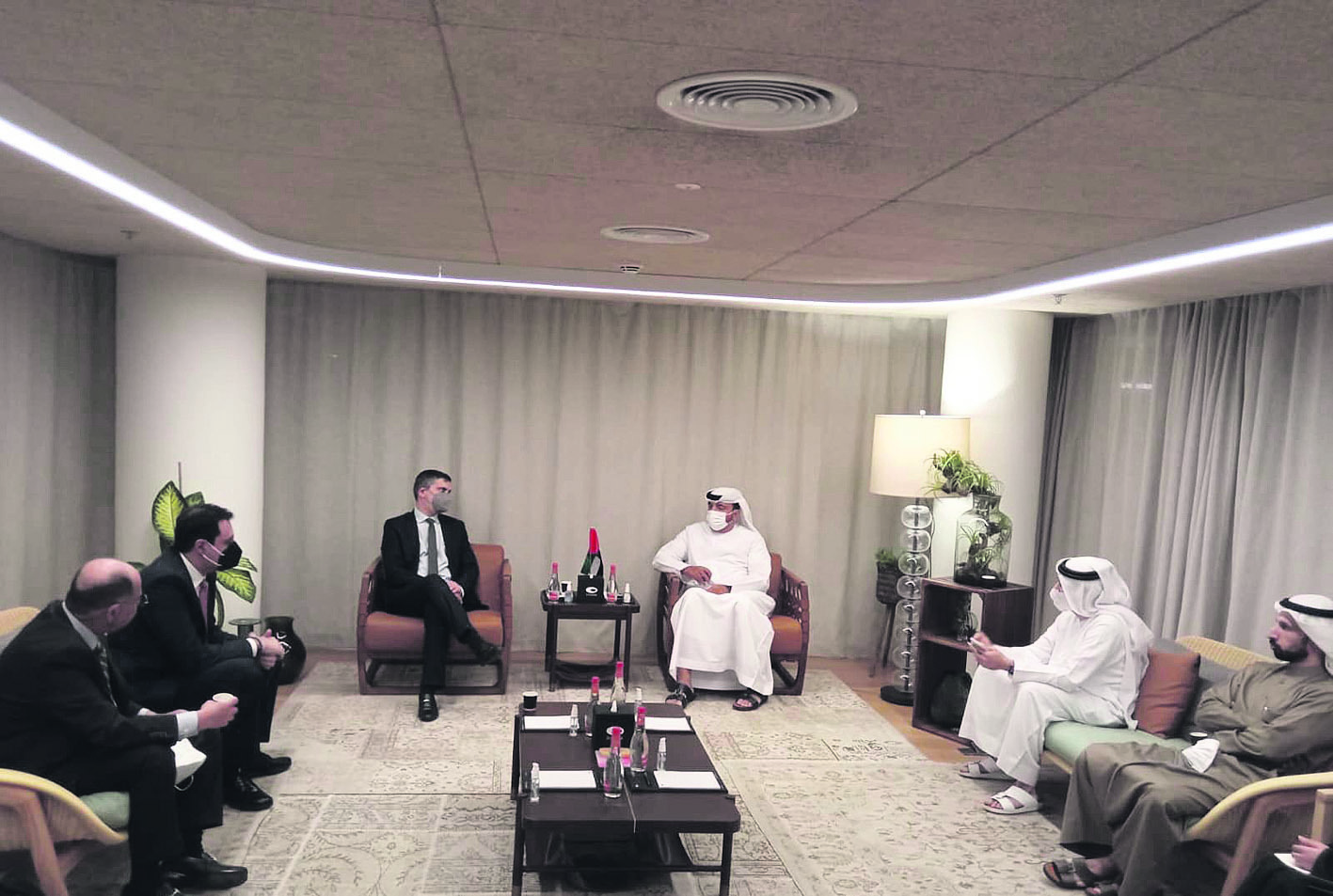 Στο πλαίσιο του ταξιδιού, ο κ. Δήμας συναντήθηκε με τον υπουργό Επικρατείας, αρμόδιο για την επιχειρηματικότητα και τις μικρομεσαίες επιχειρήσεις, Dr. Ahmad Belhoul Al Falasi, και τον υφυπουργό Βιομηχανίας και Προηγμένων Τεχνολογιών, Omar Al Suwaidi.