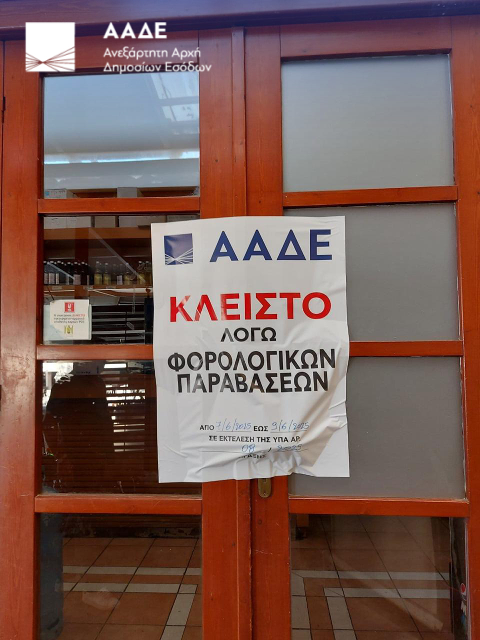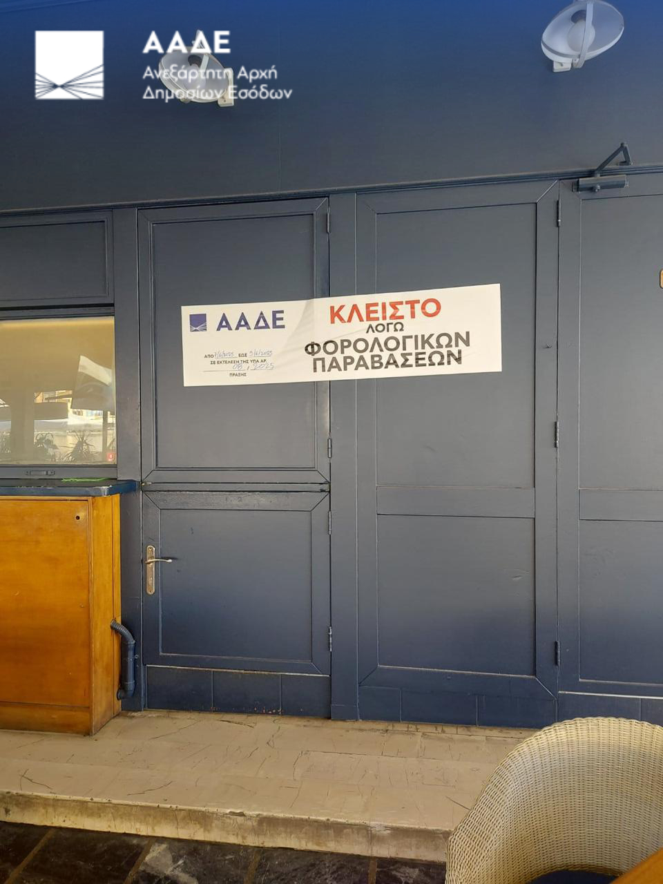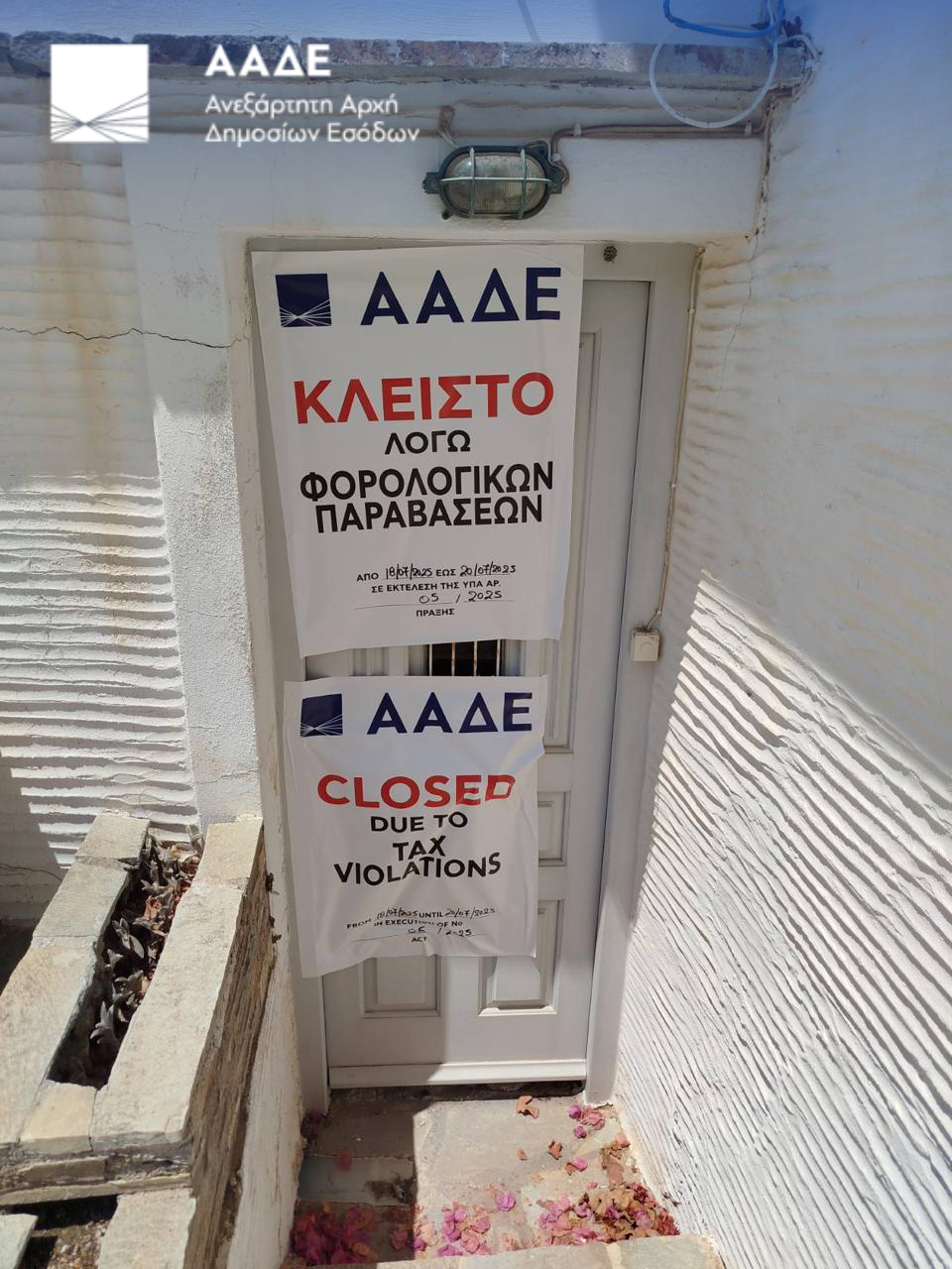 Εντοπίστηκαν 3.120 επιχειρήσεις με φορολογικές παραβάσεις, και σε 87 εξ αυτών, κυρίως από τον χώρο της εστίασης, επιβλήθηκε η αναστολή λειτουργίας 48 ή και περισσότερων ωρών.