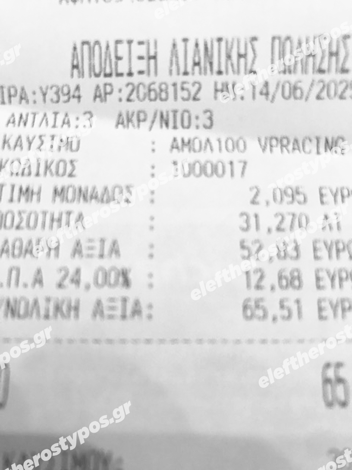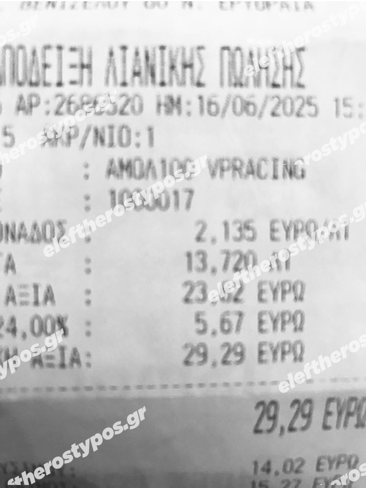 Για του λόγου το αληθές, ο «Ε.Τ.» δημοσιεύει δύο αποδείξεις αγοράς του ίδιου καυσίμου (αμόλυβδη 100 οκτανίων) από ίδιο πρατήριο της Αττικής, όπου φαίνεται καθαρά πως η τιμή αυξήθηκε από τα 2,09 ευρώ το λίτρο σε 2,13 ευρώ το λίτρο με διαφορά 48 ωρών!