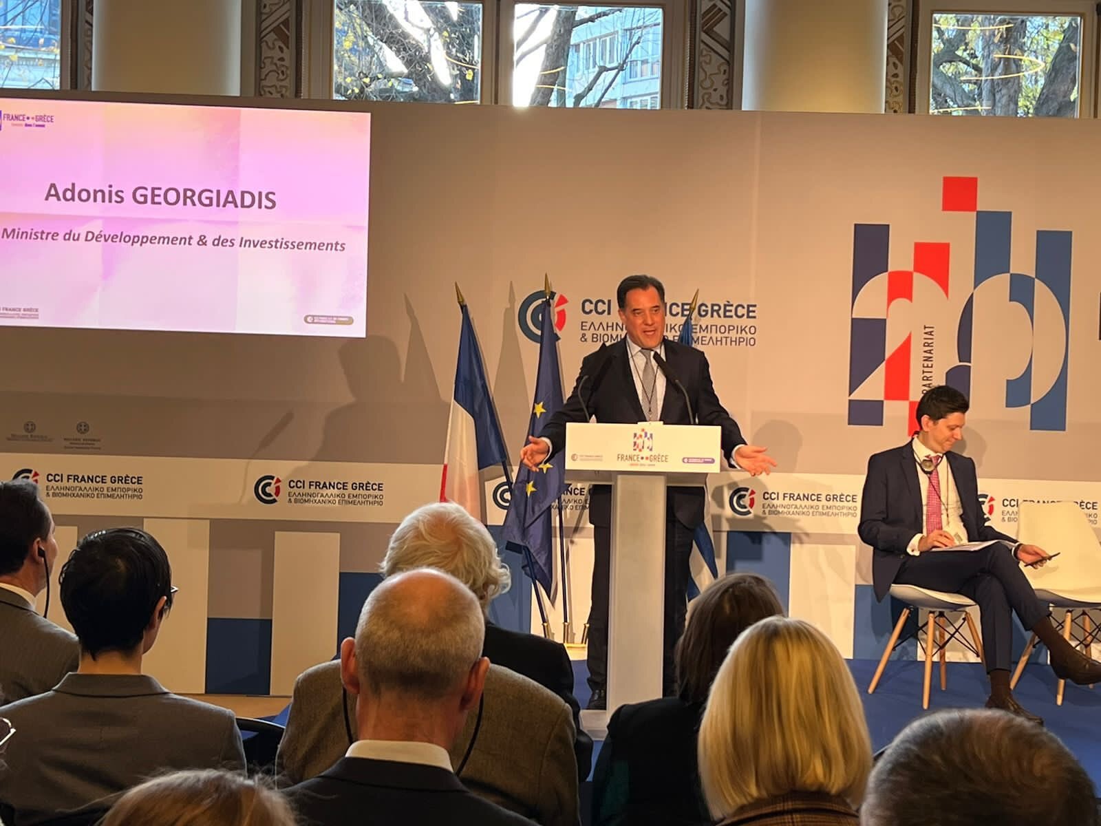 Πριν λίγο στο Παρίσι, προσκεκλημένος του Ελληνο-Γαλλικού Εμπορικού και Βιομηχανικού Επιμελητηρίου, μίλησα στο ΕλληνοΓαλλικό Επενδυτικό Forum. Είχα την ευκαιρία να παρουσιάσω σε δεκάδες Γαλλικές Επιχειρήσεις τα εντυπωσιακά οικονομικά μας επιτεύγματα της τελευταίας τριετίας και να pic.twitter.com/qhsjPicJIc