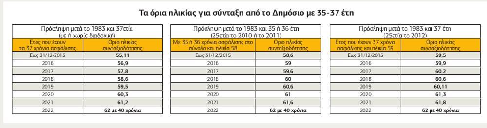 Προσοχή: Για την έξοδο με 37ετία και με χαμηλότερο των 60 όριο ηλικίας έως το 2020, οι υπάλληλοι θα πρέπει να έχουν προσληφθεί απαραίτητα μετά την 1η/1/1983 και να έχουν απαραίτητα 25ετία έως το 2010.