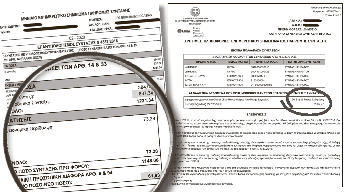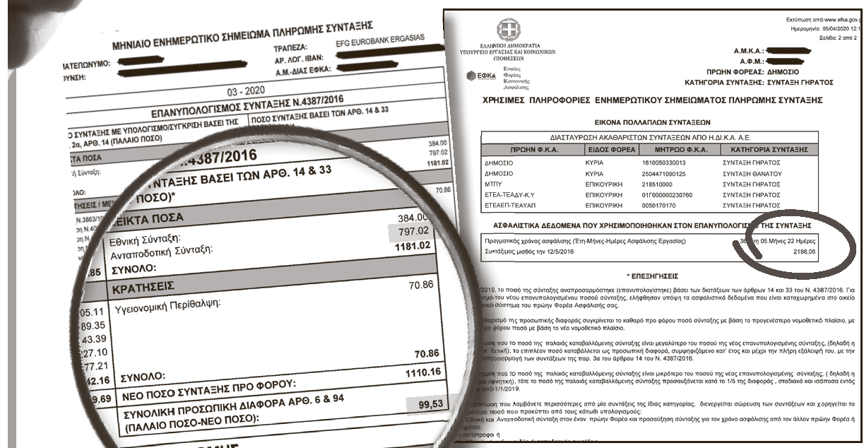 Σύμφωνα με τα ντοκουμέντα που αποκαλύπτει ο «Ε.Τ.» της Κυριακής, άλλαξαν τα ποσά της ανταποδοτικής σύνταξης και της προσωπικής διαφοράς σε άλλους προς τα πάνω και σε άλλους προς τα κάτω.