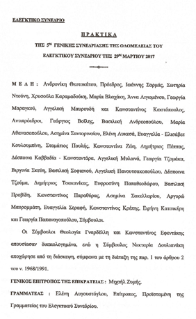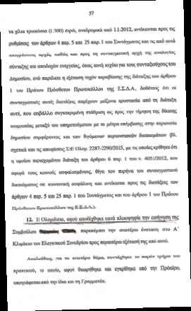 Στα πρακτικά της 5ης Συνεδρίασης της Ολομέλειας του Ελεγκτικού Συνεδρίου που έλαβε χώρα στις 29 Μαρτίου του 2017, η πλειοψηφία του Σώματος έκανε δεκτή τη σχετική εισήγηση (σ.σ.: σκέψη 10) και αποφάσισε ότι «οι διατάξεις της παραγράφου 1 του άρθρου 1 του ν. 4051/2012 δεν αντίκεινται στις ρυθμίσεις των άρθρων 73 παρ.2, 2 παρ.1, 4 παρ.5, 25 παρ.1 και 4 του Συντάγματος, περαιτέρω δε, κατά το μέρος που μειώνει αναδρομικά τη σύνταξη του ενιστάμενου δεν αντίκειται για τους λόγους που αναφέρθηκαν στην προηγούμενη σκέψη στο άρθρο 1 του Πρώτου Πρόσθετου Πρωτοκόλλου της ΕΣΔΑ».