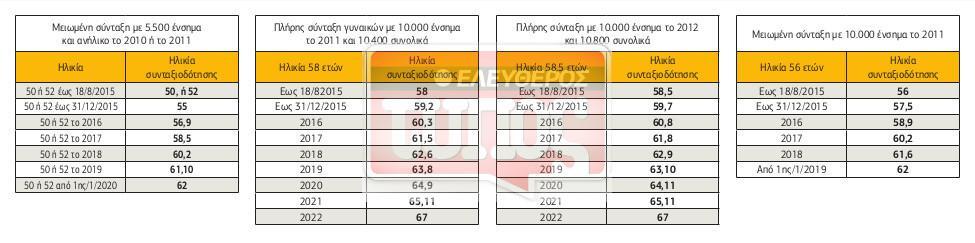 Τα όρια ηλικίας είναι από 55 ως 67 ετών ανάλογα με τις προϋποθέσεις και την ηλικία που συμπληρώνουν μέχρι 18/8/2015 ή από 19/8/2015 και μετά.
