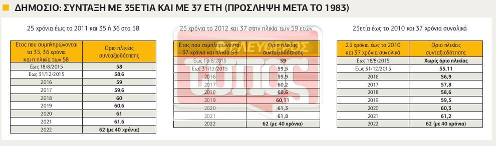 2. Από τα 58,6 και 59,5 για όσους έκλεισαν τα 58 ή τα 59 με 35ετία στο Δημόσιο, μετά τις 19/8/2015.