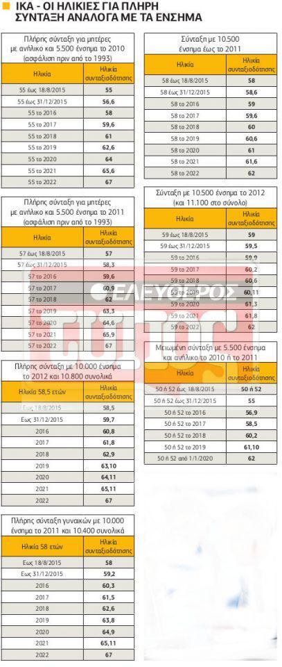 Για παράδειγμα, στην πλήρη σύνταξη οι νέες ηλικίες συνταξιοδότησης ξεκινούν: