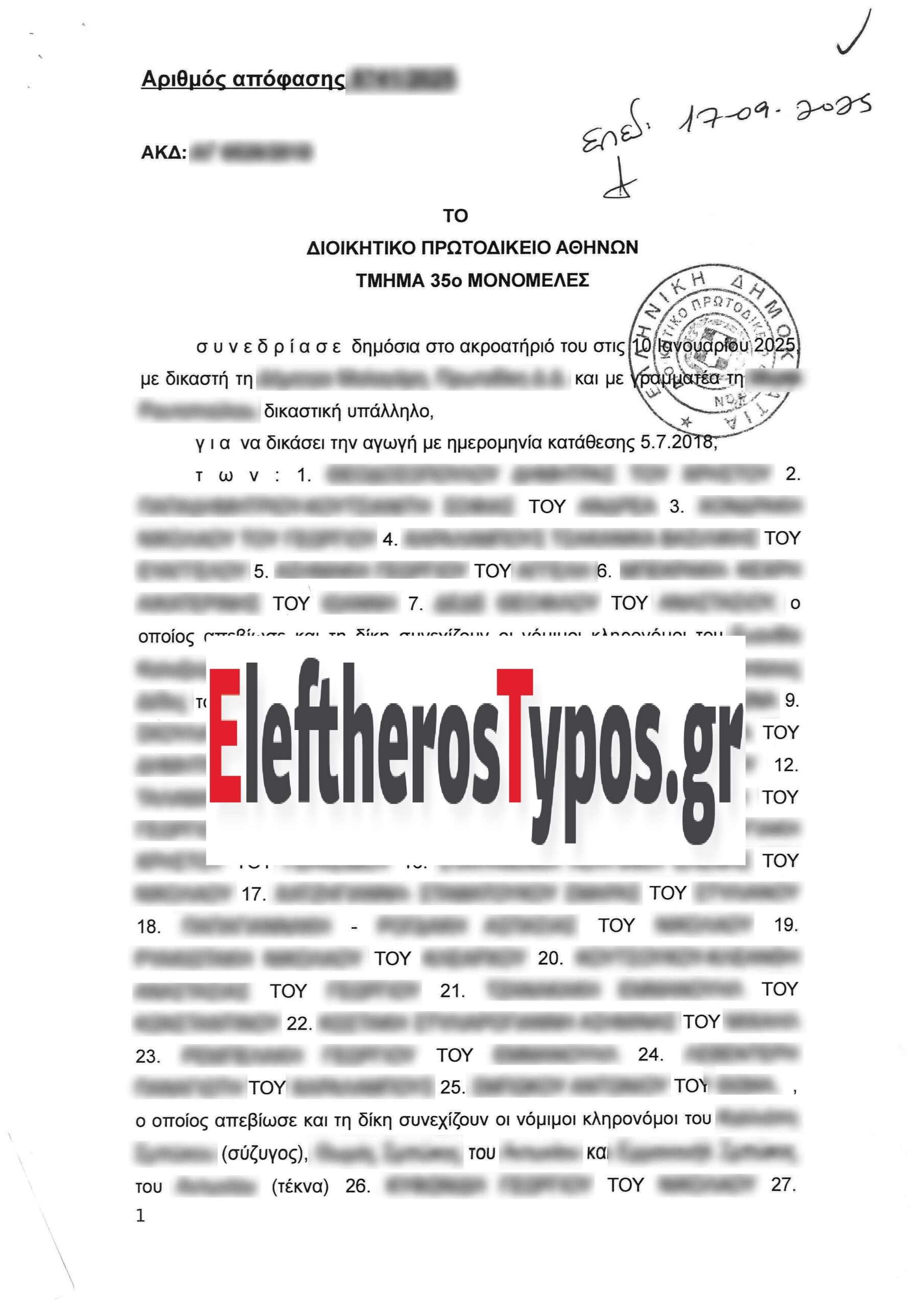 Η απόφαση (υπ’ αριθμόν 8741/2025) εκδόθηκε από το Διοικητικό Πρωτοδικείο Αθηνών (35ο Μονομελές) σε ομαδική αγωγή συνταξιούχων που ασκήθηκε από το δικηγορικό γραφείο του δικηγόρου Λουκά Αποστολίδη.