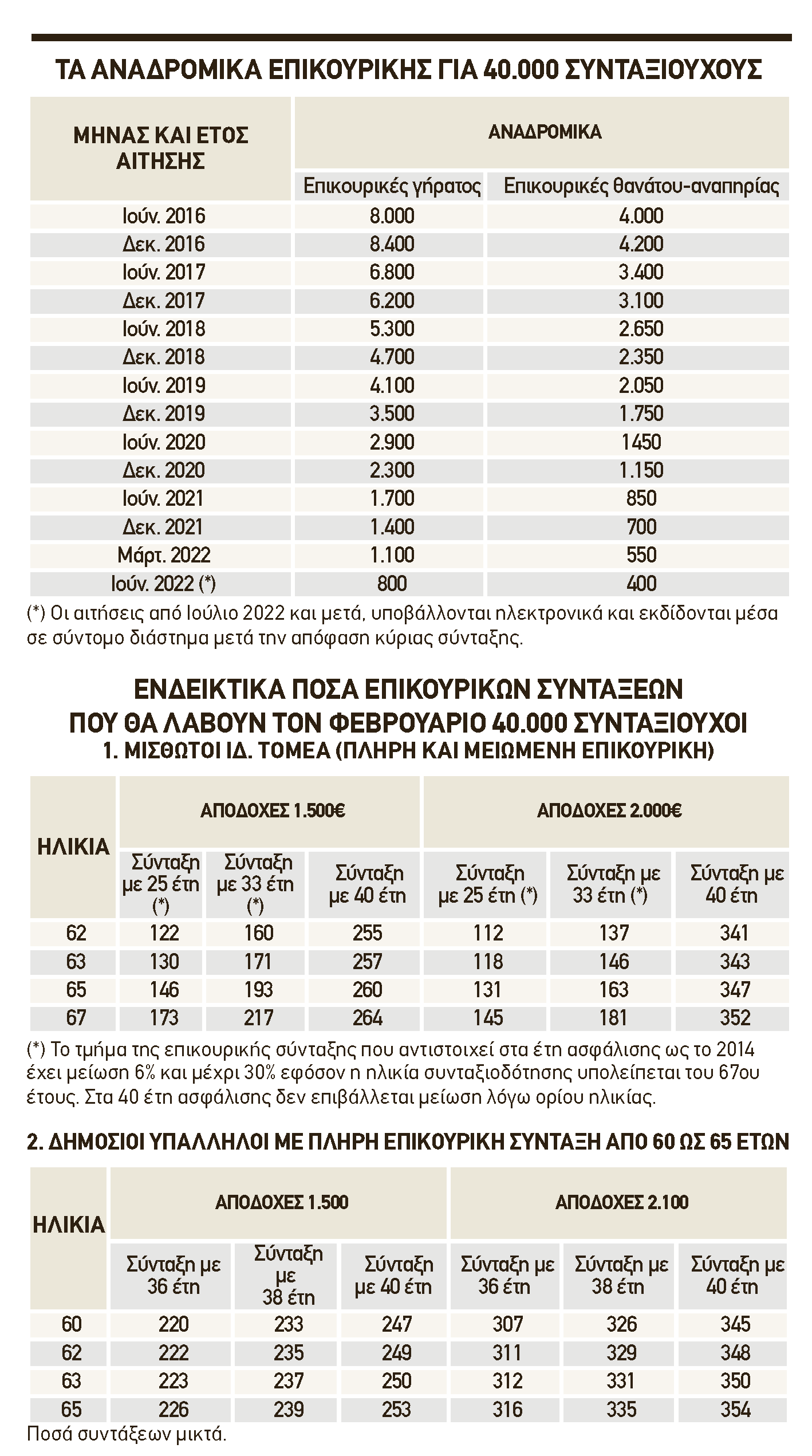 Αλλοι 40.000 συνταξιούχοι θα πάρουν μέσα στον Φεβρουάριο ολόκληρη την επικουρική με τα αναδρομικά που τους οφείλονται, καθώς οι αποφάσεις τους έχουν ήδη εκδοθεί.