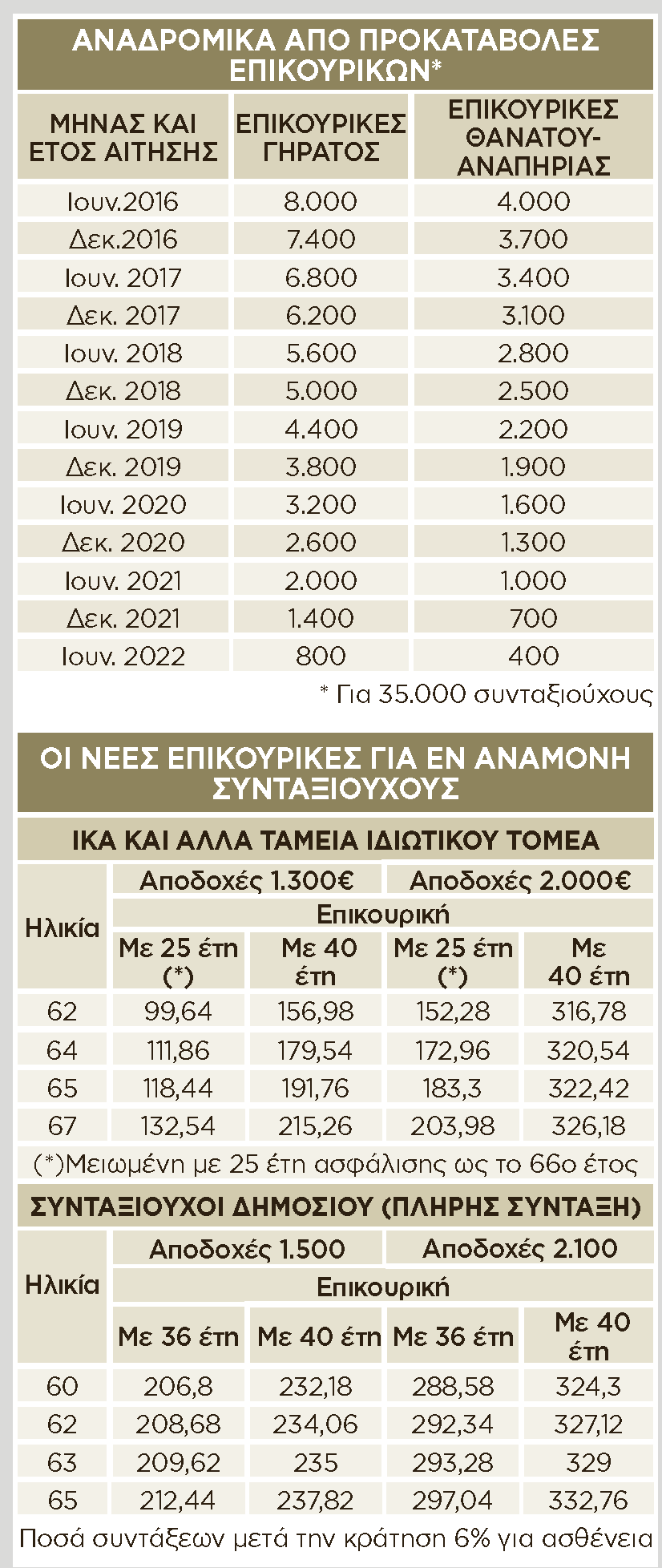 *Συνταξιούχος που περιμένει την επικουρική από τον Ιούνιο του 2016 θα πάρει προκαταβολή 8.000 ευρώ αν είναι λόγω γήρατος και 4.000 ευρώ για επικουρική χηρείας-αναπηρίας.
