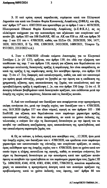 *Ο τρίτος ενάγων εδικαιούτο να λάβει ποσό εθνικής και ανταποδοτικής σύνταξης 2.309,42 ευρώ μηνιαίως (3.849,03 ευρώ Χ 60% = 2.309,42 ευρώ). με αναδρομικά 5.929,12 ευρώ από 16.2.2017 έως 31.12.2020.