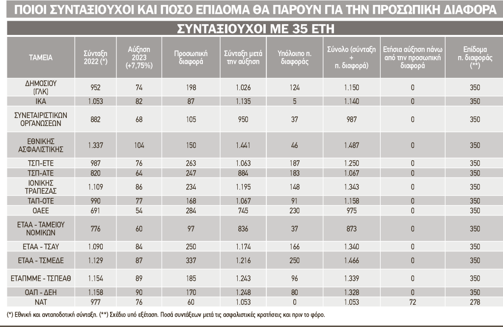 - Προσωπική διαφορά και επίδομα με 35 έτη: