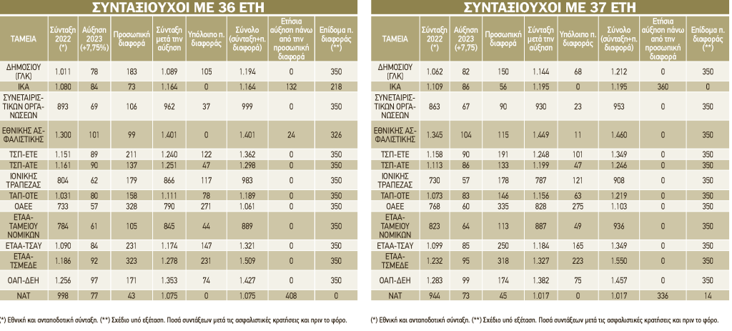 *Συνταξιούχοι του ΙΚΑ με 37 έτη έχουν αύξηση πάνω από την προσωπική διαφορά με καθαρό κέρδος σε ετήσια βάση 360 ευρώ. Με βάση τα εξεταζόμενα σενάρια δεν θα πάρουν επίδομα γιατί η αύξηση ξεπερνά τα 350 ευρώ.
