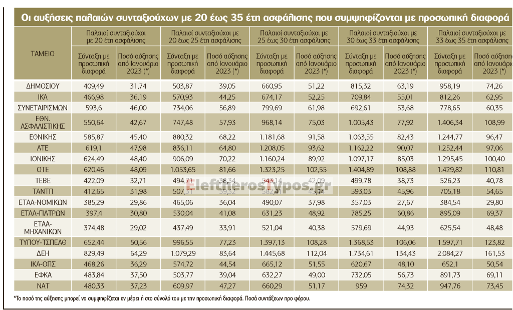 Συντάξεις: Για παράδειγμα, και σύμφωνα με τους δύο πίνακες που δημοσιεύουμε: