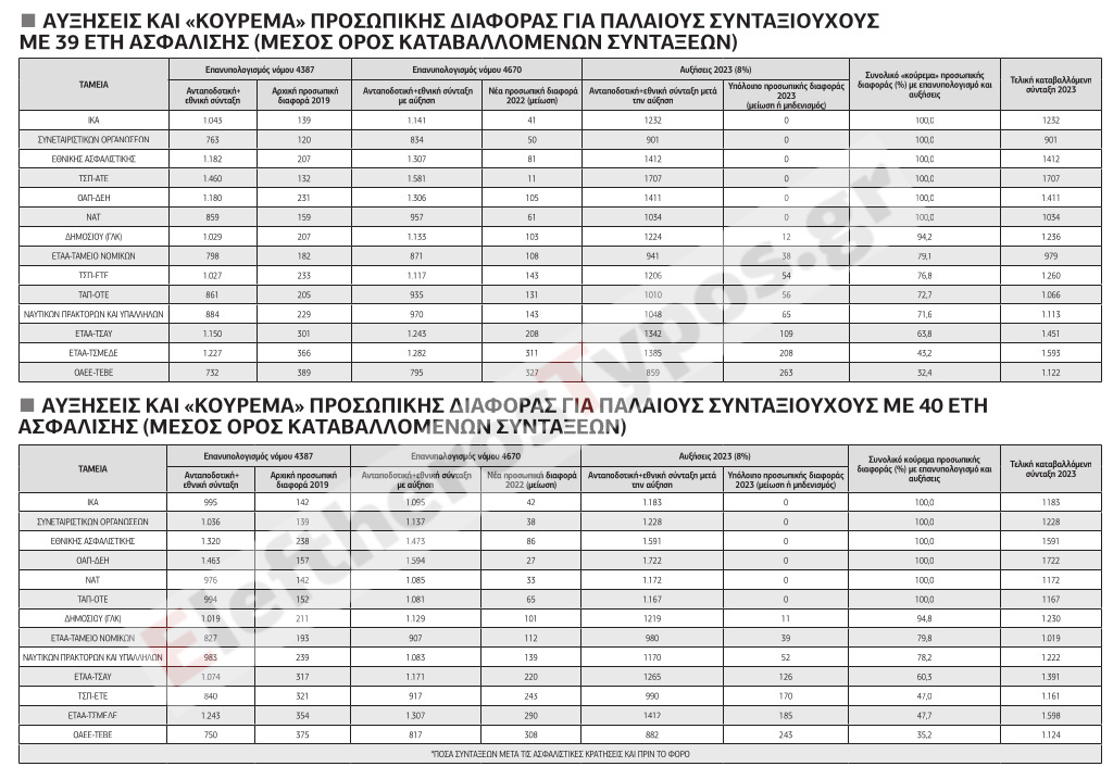 Μεγάλο «κούρεμα» προσωπικής διαφοράς θα έχουν εκατοντάδες χιλιάδες παλαιοί συνταξιούχοι με 39 και με 40 έτη σε ποσοστό ως 94,8%.