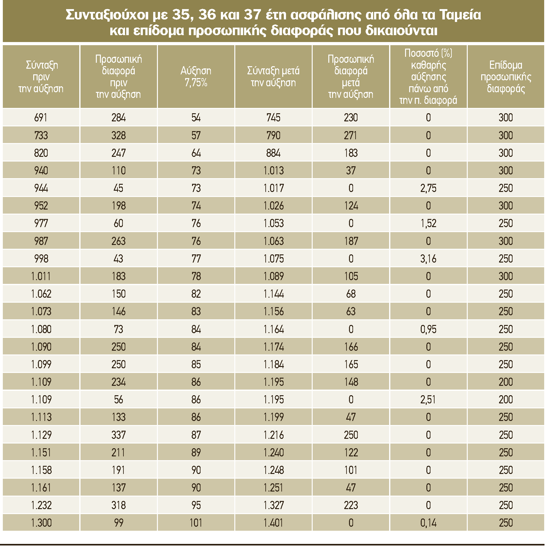 Σύμφωνα με τους πίνακες που δημοσιεύει το ένθετο «Ασφάλιση και Συντάξεις»: