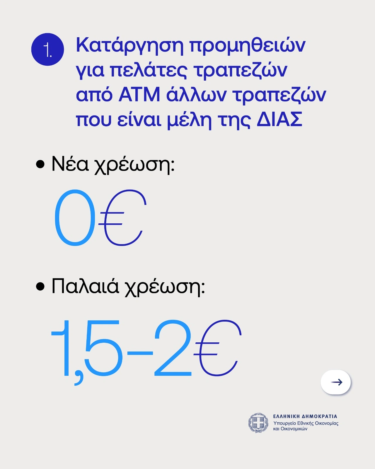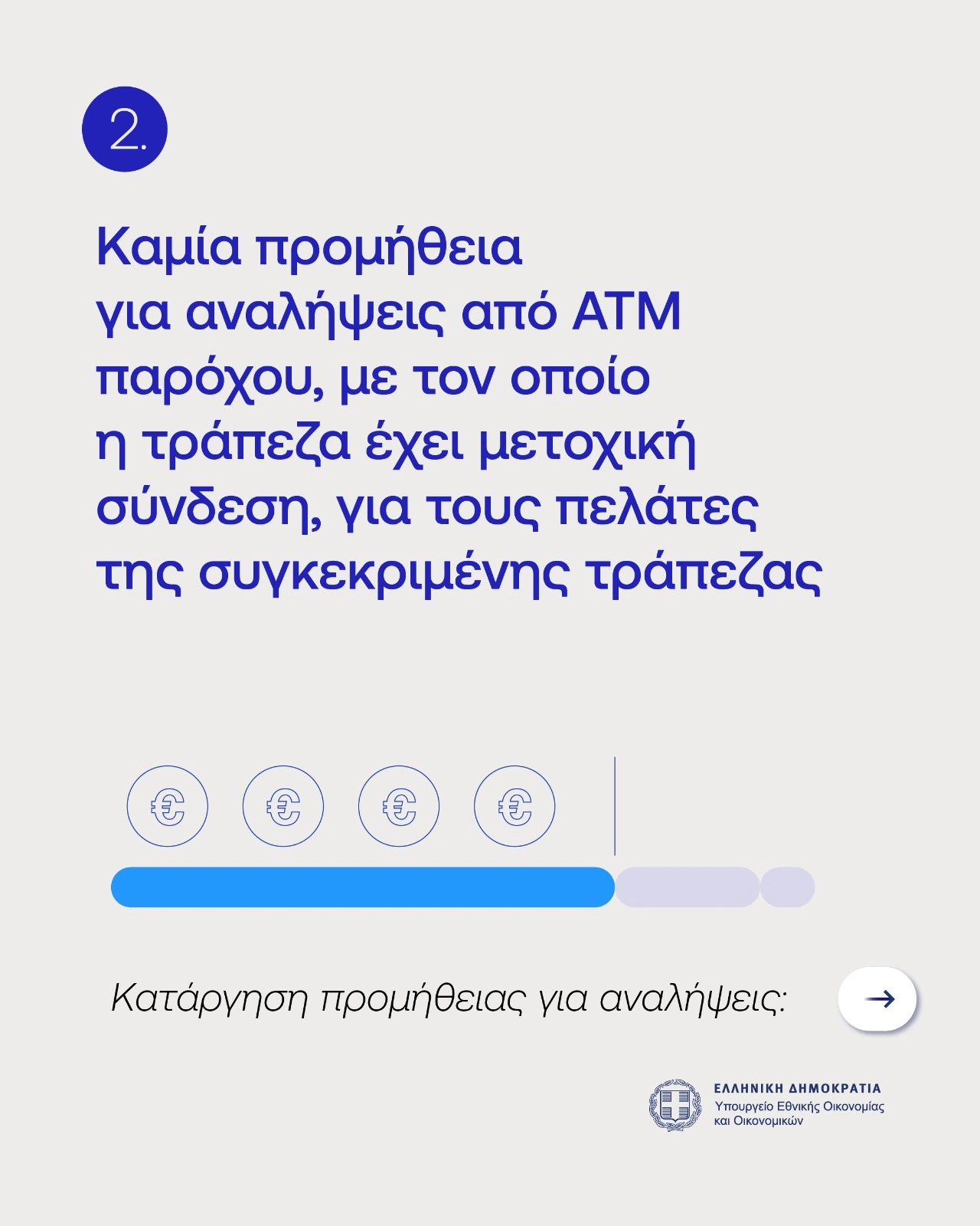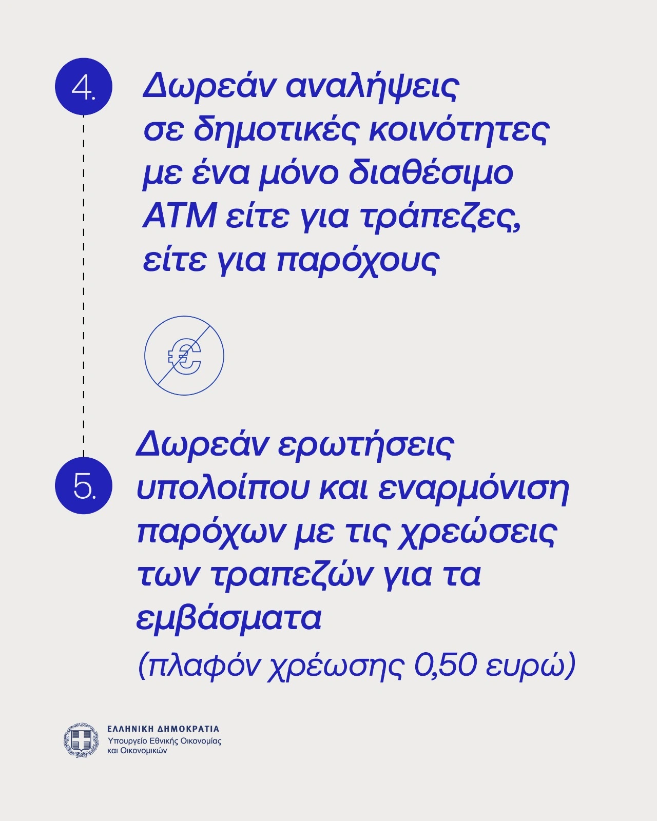 5. Σε δημοτικές κοινότητες που διαθέτουν ένα ΑΤΜ και ισχύει ήδη η μηδενική χρέωση, η μηδενική χρέωση επεκτείνεται και στους 3ους παρόχους.
