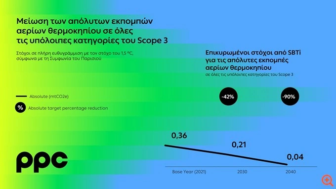 – μείωση 90% των απόλυτων εκπομπών αερίων θερμοκηπίου σε όλες τις υπόλοιπες κατηγορίες του Scope 3.
