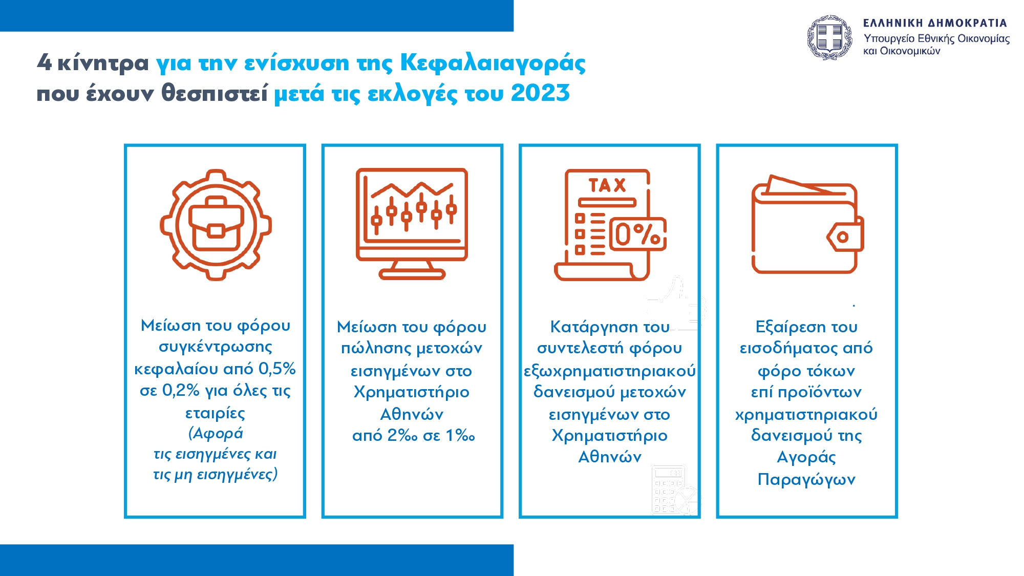 Ο υπουργός Εθνικής Οικονομίας και Οικονομικών Κωστής Χατζηδάκης δήλωσε: «Μετά την αποκατάσταση της εμπιστοσύνης στις προοπτικές της οικονομίας, με την επίτευξη και διατήρηση λογικών πλεονασμάτων και τη σταθερή μείωση του χρέους, βασική προϋπόθεση για την προσέλκυση επενδύσεων στη χώρα είναι η περαιτέρω βελτίωση του επιχειρηματικού περιβάλλοντος. Το σχέδιο νόμου για την Κεφαλαιαγορά αποτελεί βασικό εργαλείο στην κατεύθυνση αυτή. Με τις ρυθμίσεις που προτείνουμε, εισάγουμε κίνητρα και καταργούμε περιττά γραφειοκρατικά εμπόδια για την πρόσβαση των επιχειρήσεων στο Χρηματιστήριο. Παράλληλα εισάγουμε αυστηρούς κανόνες εποπτείας και παρέχουμε στις εποπτικές αρχές νέα εργαλεία ελέγχου όπως το mystery shopping που εφαρμόζεται ήδη σε άλλες χώρες της ΕΕ. Και ακόμη, εισάγουμε ρυθμίσεις για εποπτεία των κρυπτοστοιχείων, επιβολή κυρώσεων σε όσους δεν τηρούν τη νομοθεσία και υποχρέωση ενημέρωσης των επενδυτών για τα χαρακτηριστικά και τους κινδύνους που συνεπάγονται οι τοποθετήσεις σε αυτά. Με διαφάνεια, καλύτερη εποπτεία και άρση αντικινήτρων στοχεύουμε σε περαιτέρω αύξηση των επενδύσεων, προς όφελος της εθνικής οικονομίας και των Ελλήνων πολιτών».