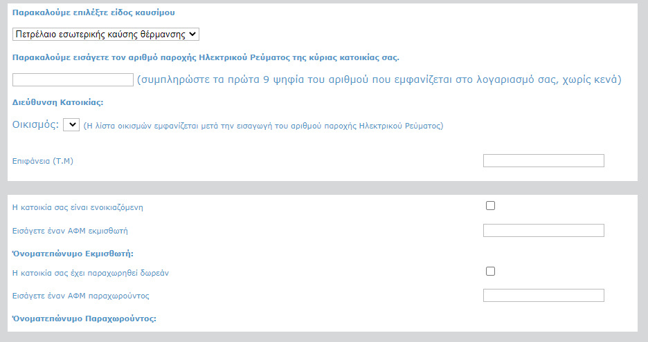 Επιλογή «ιδιοκτήτης» ή «ένοικος» (συμπληρώνετε τον ΑΦΜ του ιδιοκτήτη)