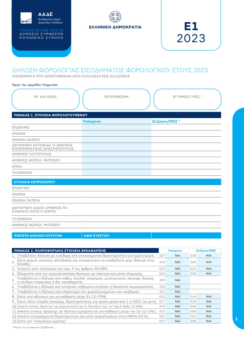 Φορολογικές δηλώσεις: Τι είναι το έντυπο Ε1