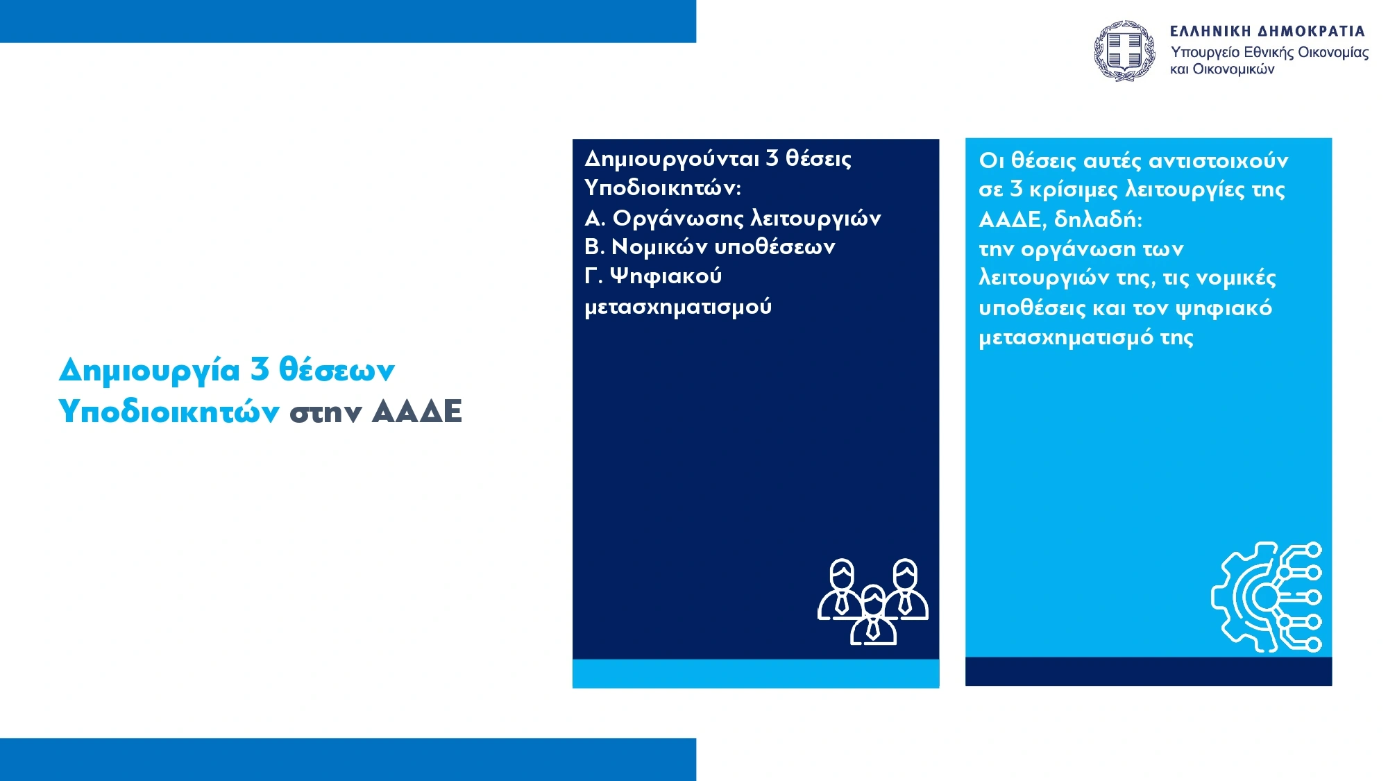 Με στόχο την ακόμα μεγαλύτερη ταχύτητα και αποτελεσματικότητα της ΑΑΔΕ δρομολογούνται ορισμένες σημαντικές αλλαγές στο διοικητικό της μοντέλο. Συγκεκριμένα: