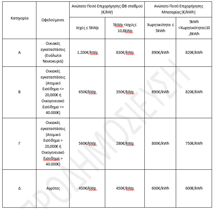 Δικαιούχοι του προγράμματος είναι νοικοκυριά και αγρότες που θα μπορούν να εγκαταστήσουν το δικό τους μικρό φωτοβολταϊκό, σε συνδυασμό με σύστημα αποθήκευσης (μπαταρία).