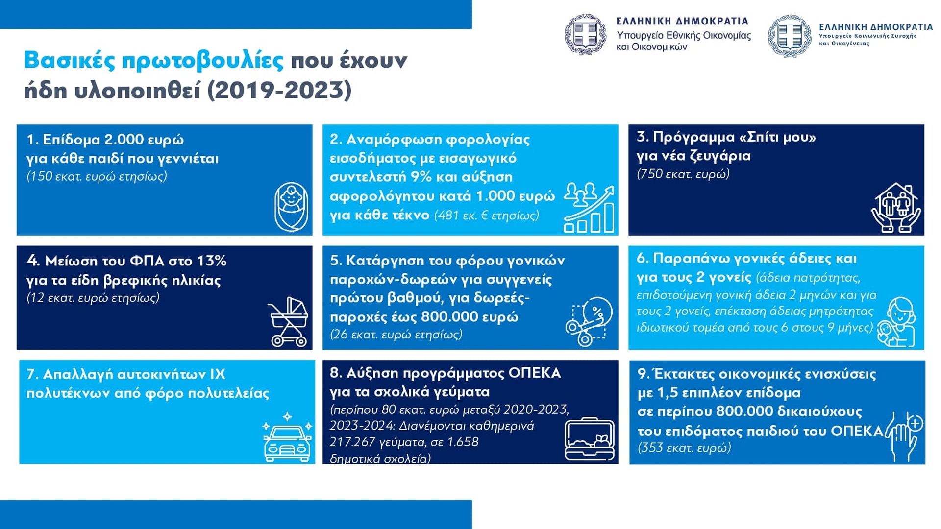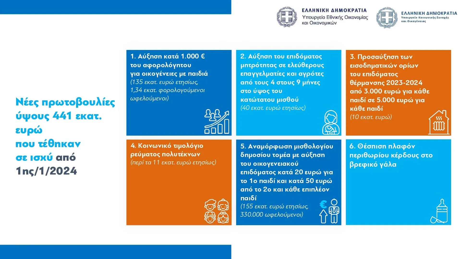 Εκτός από την αύξηση του επιδόματος γέννησης, η Κυβέρνηση προχωρά στην υλοποίηση 6 επιπλέον μέτρων από 1/1/2024.
