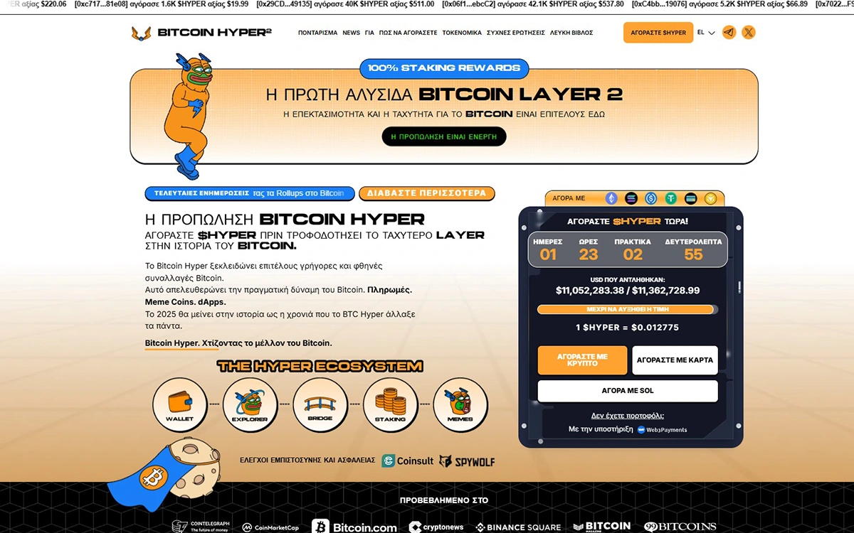 Μέσα σε αυτή την αβεβαιότητα, τα βλέμματα στρέφονται σε ανερχόμενα crypto projects που υπόσχονται μεγαλύτερες προοπτικές ανόδου στην τιμή τους. Ένα από αυτά είναι το Bitcoin Hyper ($HYPER), το οποίο προσφέρει το πρώτο ουσιαστικό Layer-2 στο δίκτυο του Bitcoin, χρησιμοποιώντας τεχνολογία Solana Virtual Machine (SVM). Ο στόχος του είναι να αντιμετωπίσει ακριβώς τα προβλήματα που σήμερα δημιουργούν ανασφάλεια. Δηλαδή τις αργές συναλλαγές και τα υψηλά κόστη.