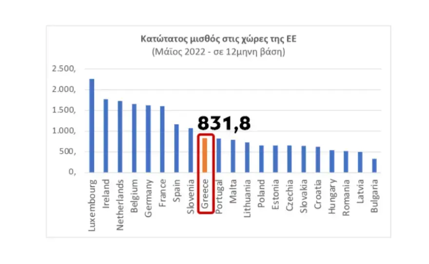 9. Πώς διαμορφώνεται ο κατώτατος μισθός στην Ελλάδα σε σχέση με την ΕΕ;