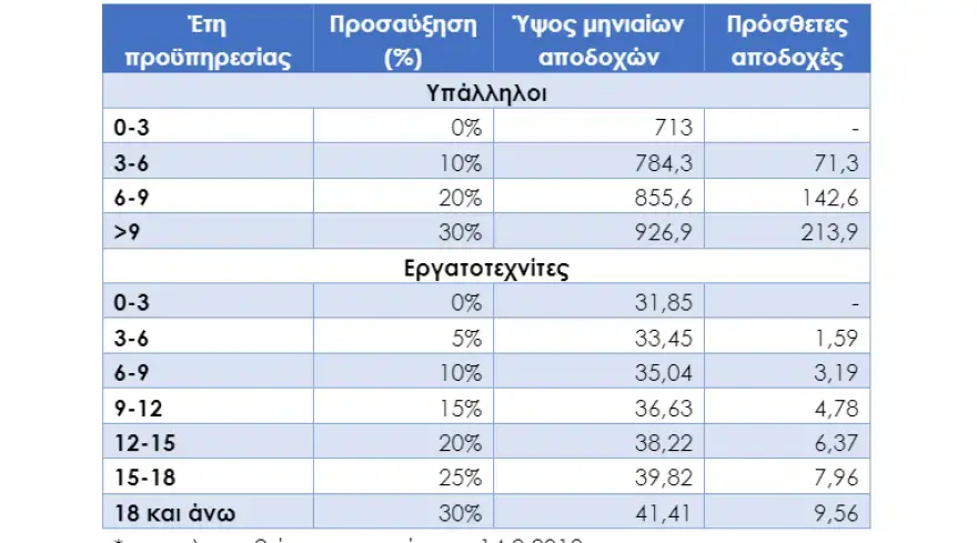 4. Τι θα συμβεί με τις λεγόμενες «τριετίες», δηλαδή την προϋπηρεσία των εργαζομένων που αμείβονται με τον κατώτατο μισθό;