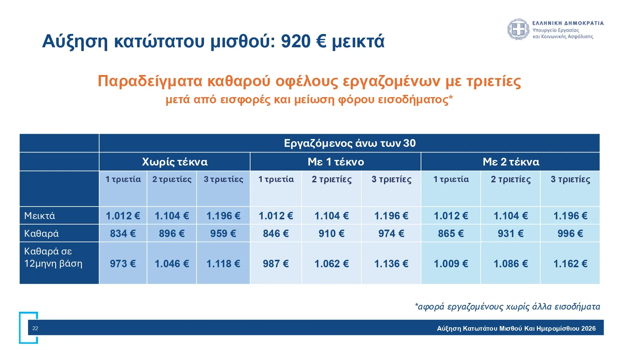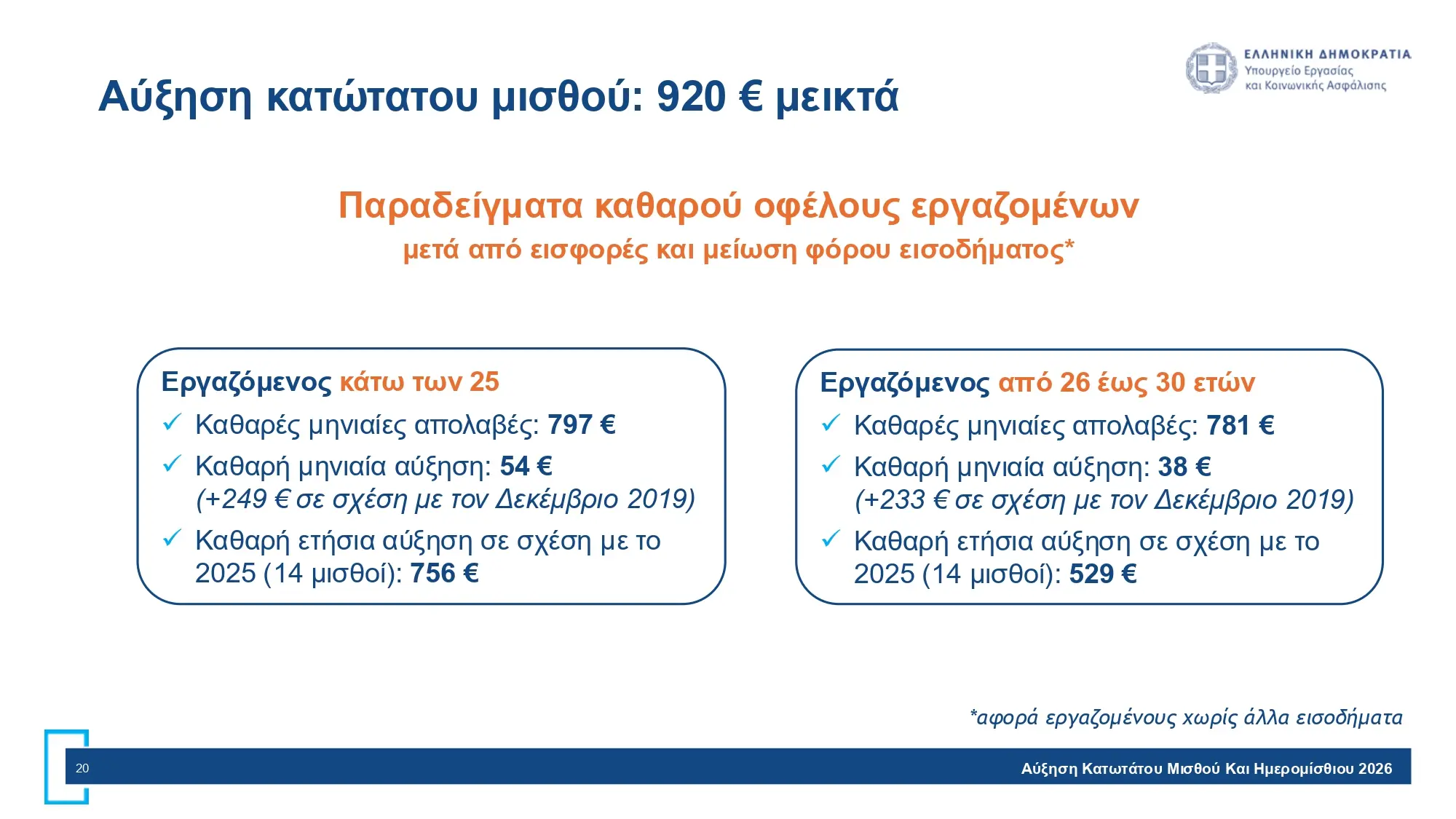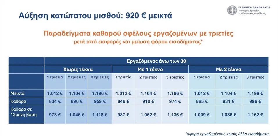 Παραδείγματα καθαρού οφέλους εργαζομένων μετά από εισφορές και μείωση φόρου εισοδήματος