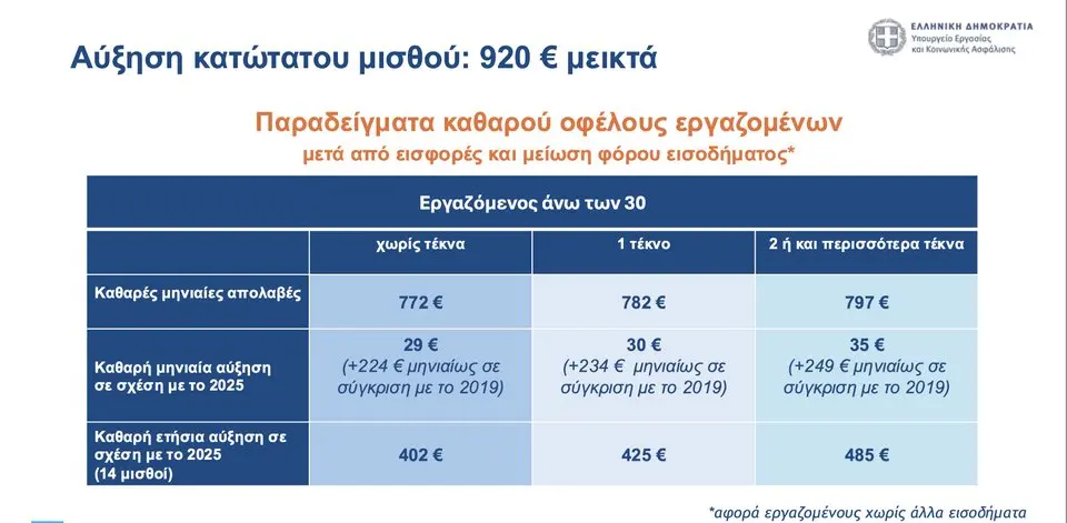 Aύξηση κατώτατου μισθού: 920 € μεικτά