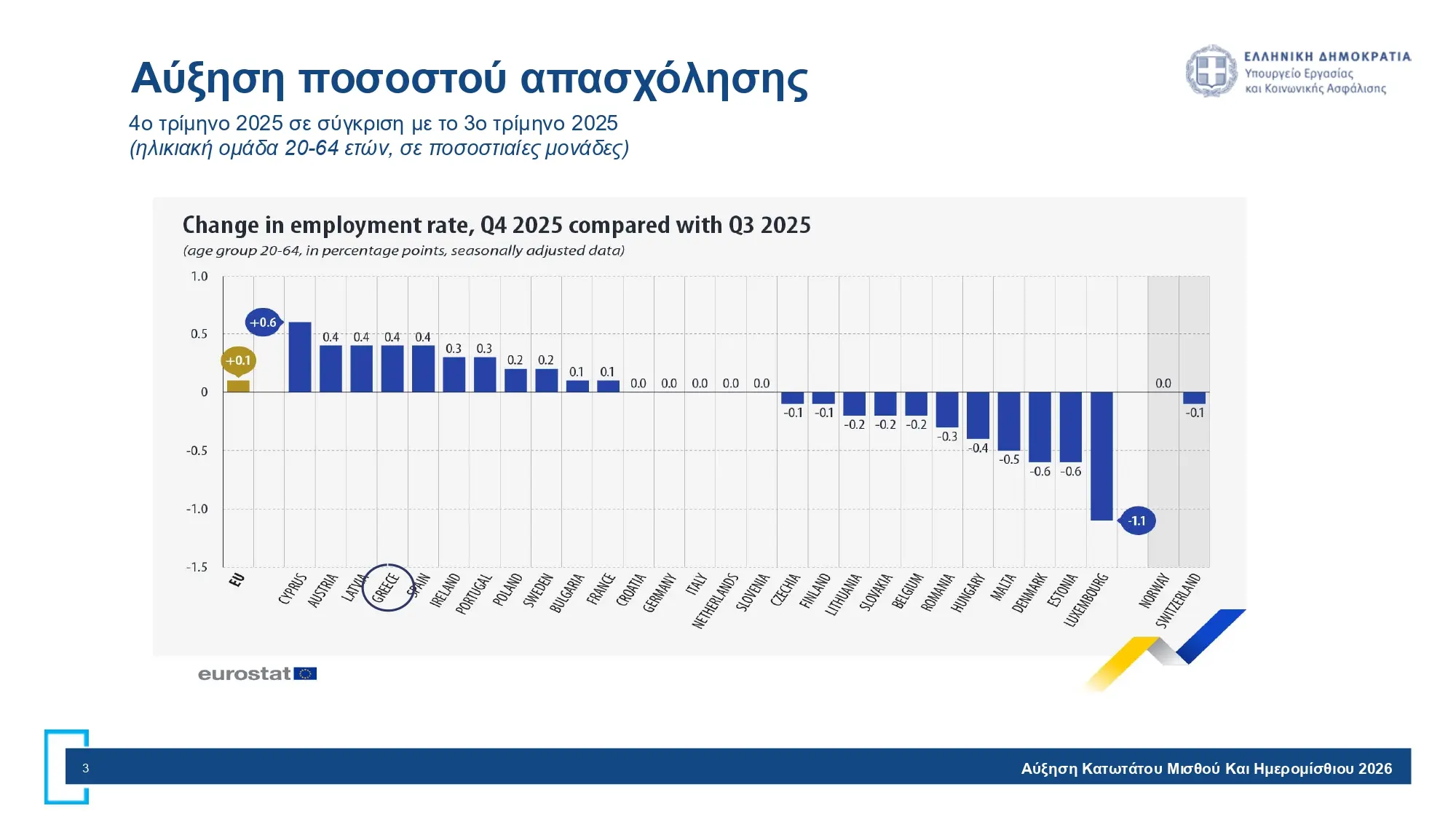 Δείκτης ανεργίας των ανδρών στο 5,4%, κάτω από τον ευρωπαϊκό μέσο όρο 5,7%.