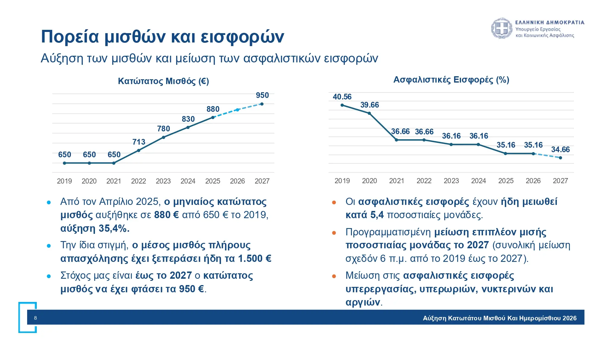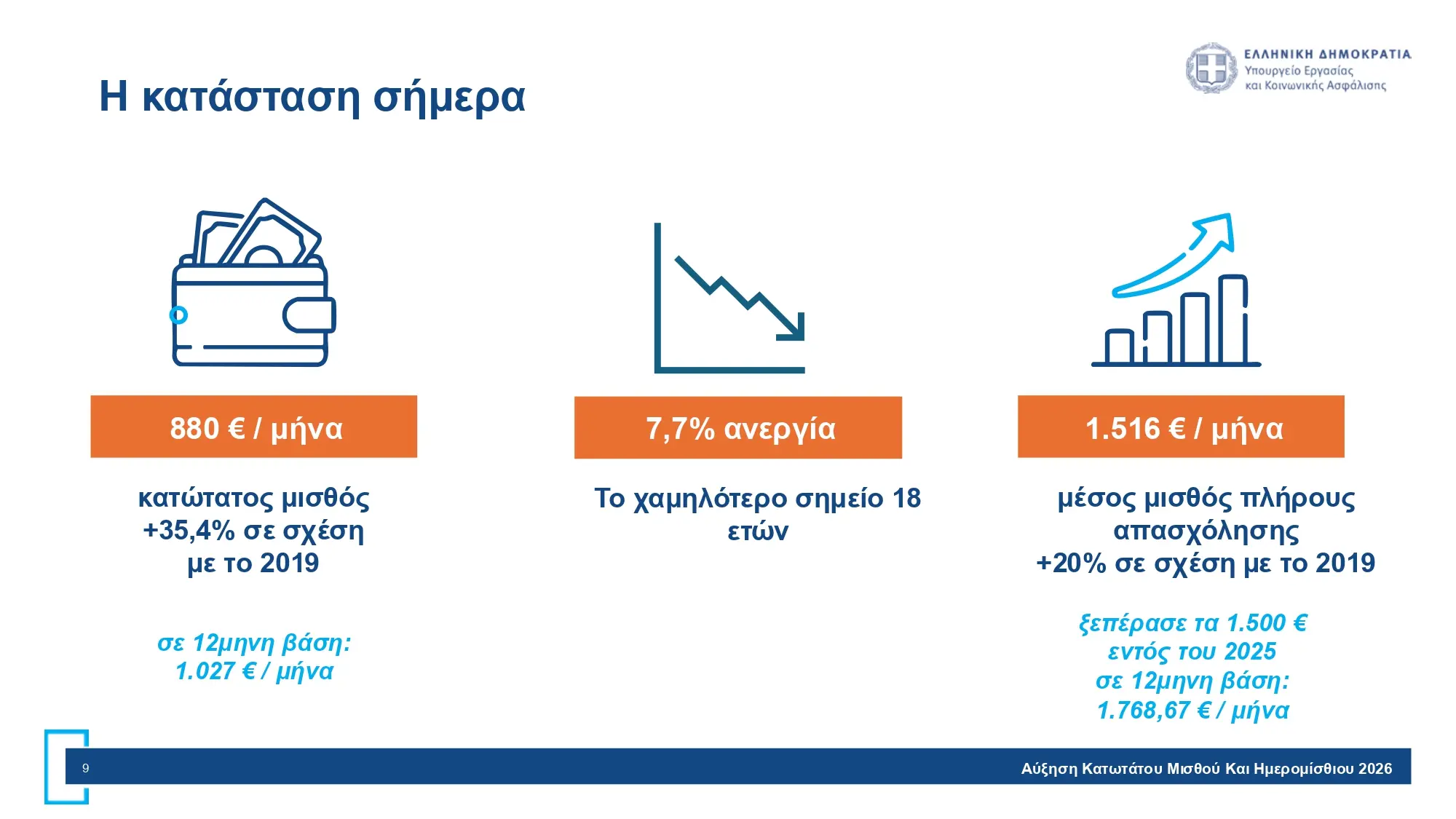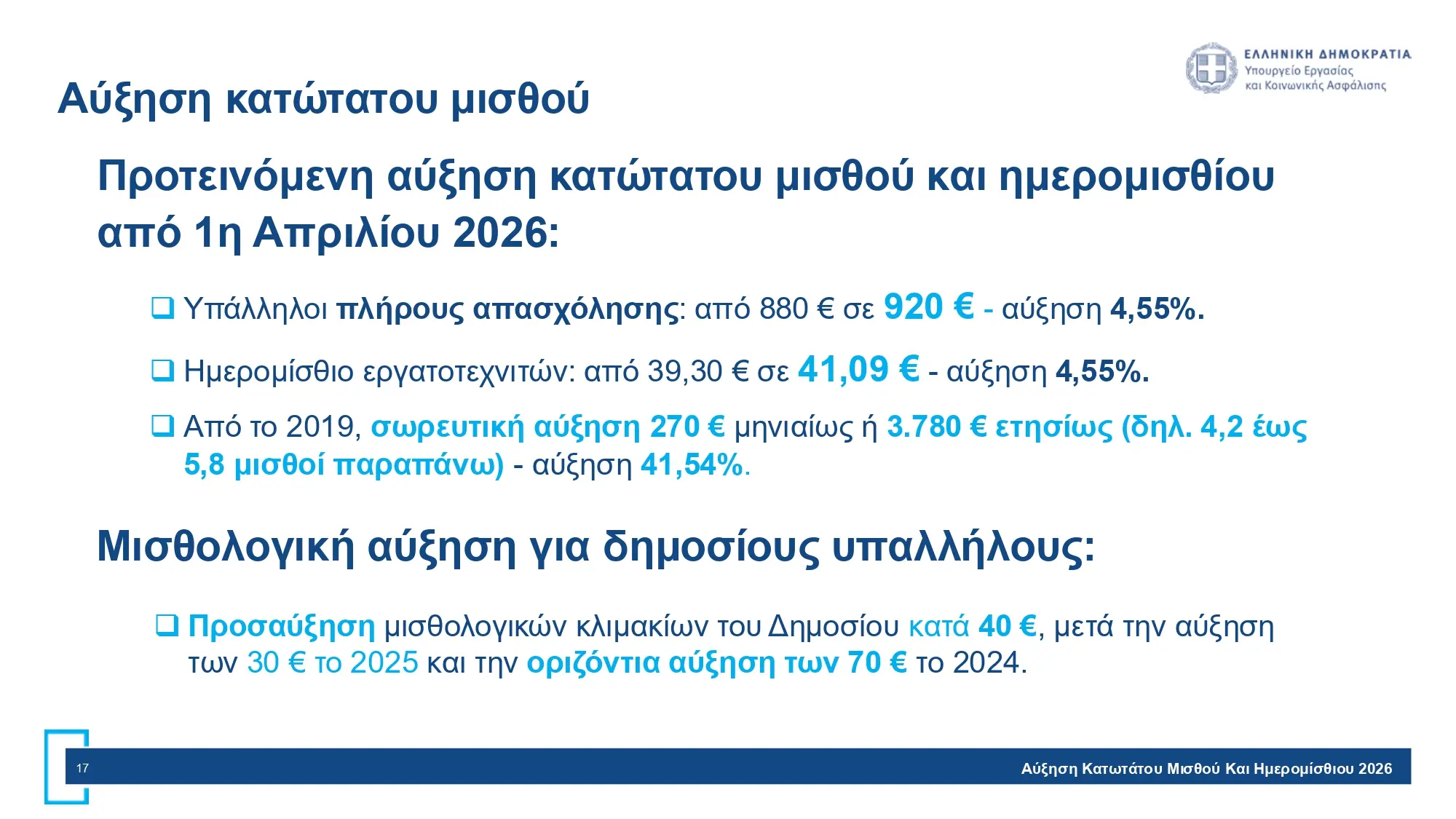 Υπάλληλοι πλήρους απασχόλησης: από 880 € σε 920 €- αύξηση 4,55%.