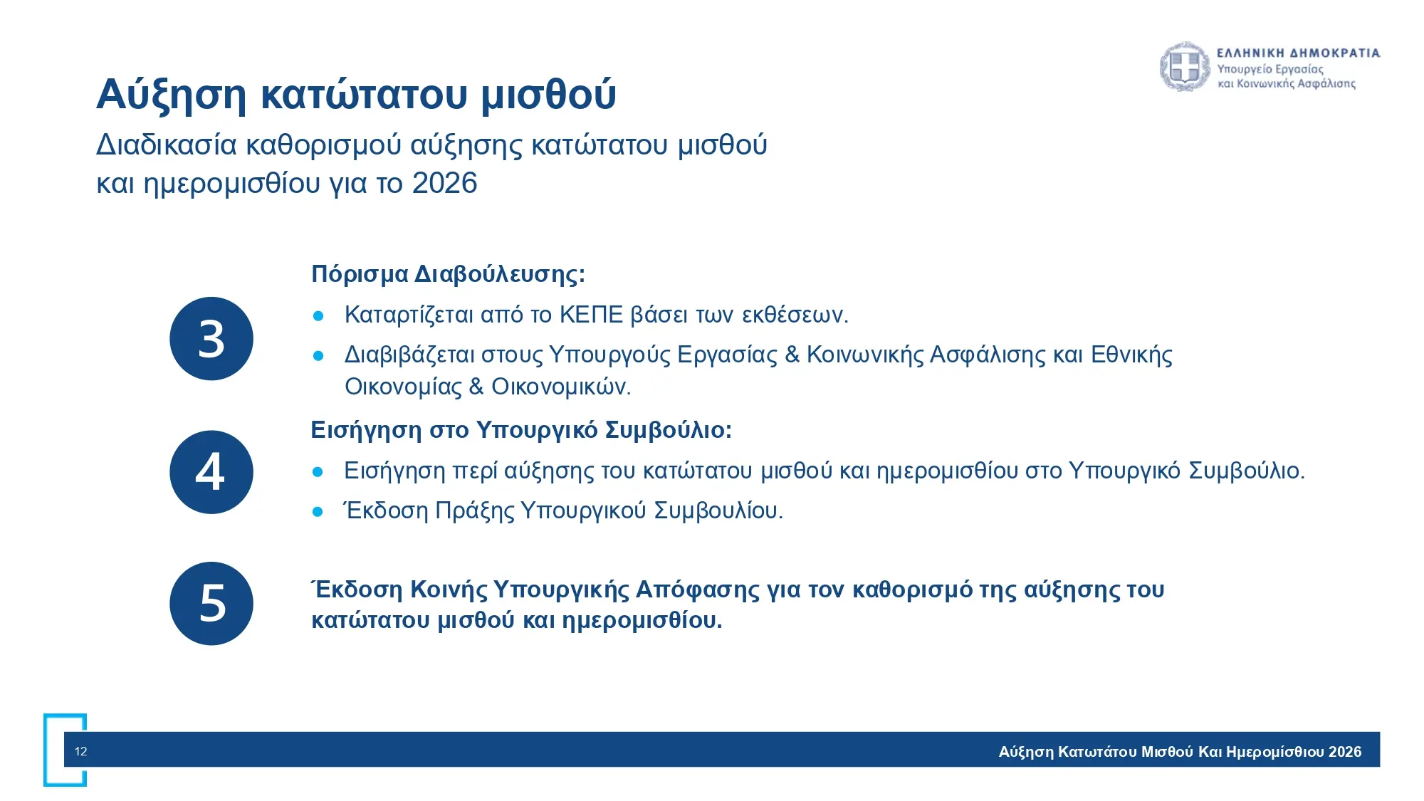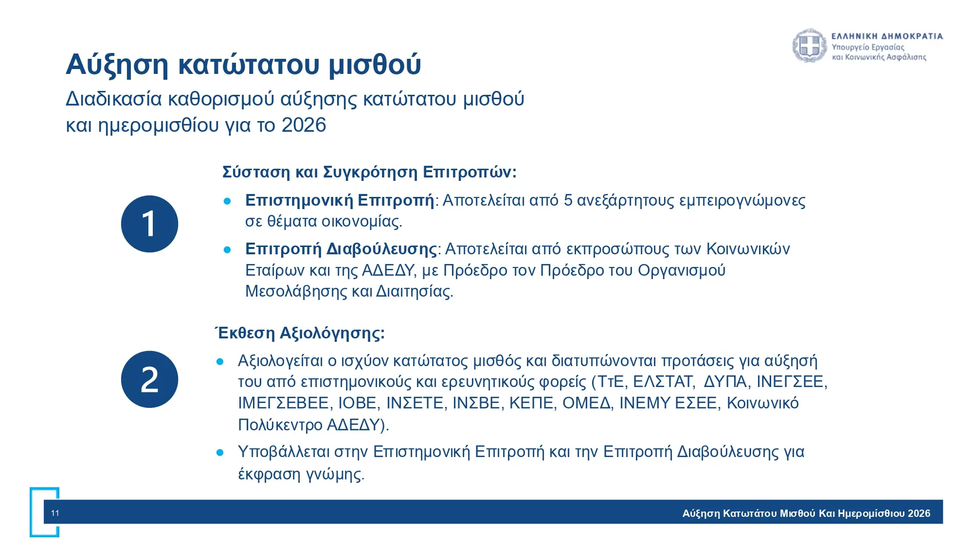 Προτεινόμενη αύξηση κατώτατου μισθού και ημερομισθίου από 1η Απριλίου 2026: