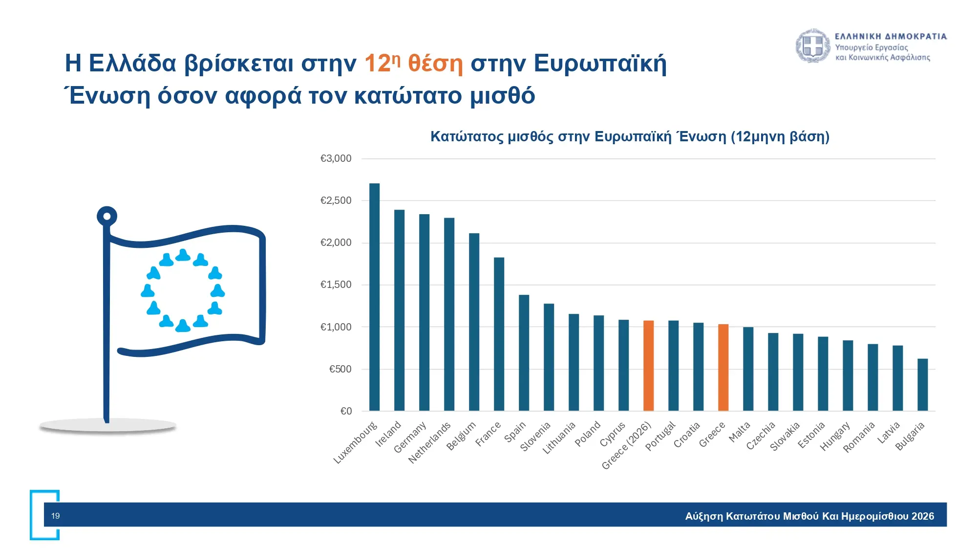 Από το 2019, σωρευτική αύξηση 270 € μηνιαίως ή 3.780 € ετησίως (δηλ. 4,2 έως