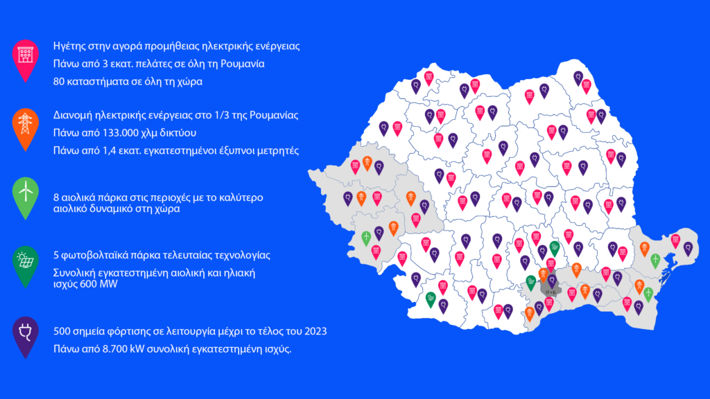 Η Enel Ρουμανίας είναι ένας από τους βασικότερους παίκτες της αγοράς ενέργειας της Ρουμανίας. Είναι νούμερο 1 σε ΑΠΕ με συνολική εγκατεστημένη ισχύ 600 MW και με επιπλέον 5 GW σε πορεία υλοποίησης, κάτι που ταιριάζει απόλυτα με τη στρατηγική της ΔΕΗ. Στην προμήθεια ηλεκτρικής ενέργειας και φυσικού αερίου η εταιρεία έχει 3,1 εκατομμύρια πελάτες και 81 καταστήματα σε όλη τη χώρα. Κατέχει το δίκτυο διανομής σε 3 περιφέρειες της χώρας, μεταξύ των οποίων και στο Βουκουρέστι, μακράν η πιο σημαντική περιφέρεια της χώρας. Διανέμει ενέργεια στο 1/3 περίπου της Ρουμανίας με πάνω από 133.000 χλμ δικτύου ενώ έχει ήδη εγκαταστήσει πάνω από 1,4 εκατ. έξυπνους μετρητές σε σπίτια και επιχειρήσεις.