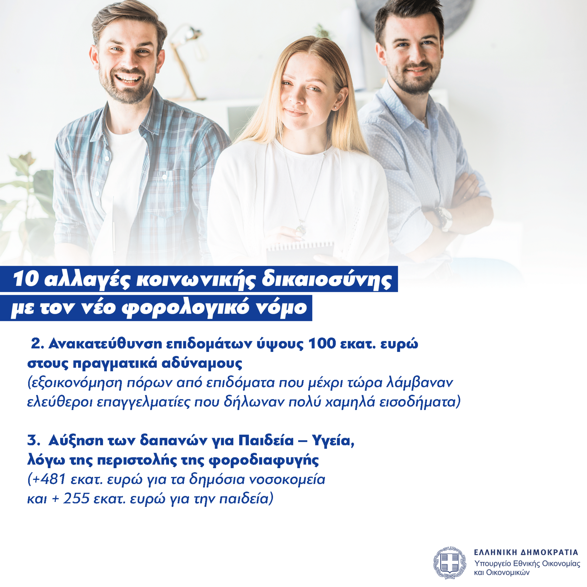 Οι παρεμβάσεις που εισάγονται έχουν ισχυρό πρόσημο κοινωνικής δικαιοσύνης και σταδιακά μέχρι το 2027 αναμένεται να αποφέρουν έσοδα που θα προσεγγίσουν τα 3 δισ. ευρώ ετησίως.