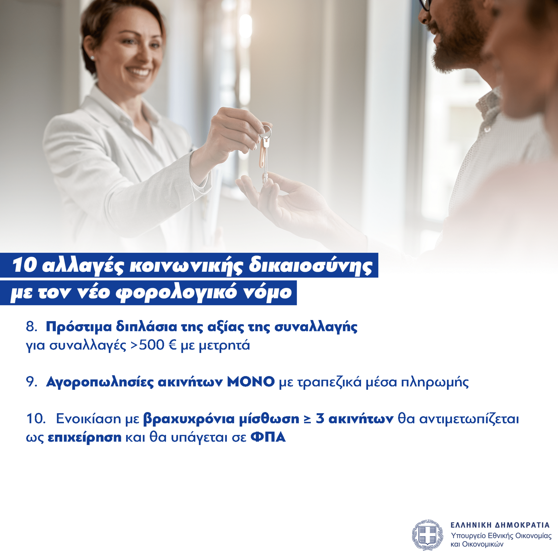 - Το τίμημα για αγοραπωλησίες ακινήτων θα καταβάλλεται αποκλειστικά με τραπεζικά μέσα πληρωμής.