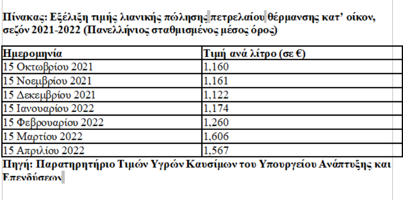 Πιο συγκεκριμένα, κάνουν λόγο για τιμή πώλησης περί το 1,52-1,55 ευρώ το λίτρο για την ερχόμενη Παρασκευή (14/10), που ξεκινάει η διάθεση του πετρελαίου θέρμανσης, όταν ένα χρόνο πριν (15.10.2021) η τιμή λιανικής ήταν 1,160 ευρώ το λίτρο. Με άλλα λόγια, οι εκτιμήσεις αφορούν σε μια αύξηση κόστους άνω του 30%.