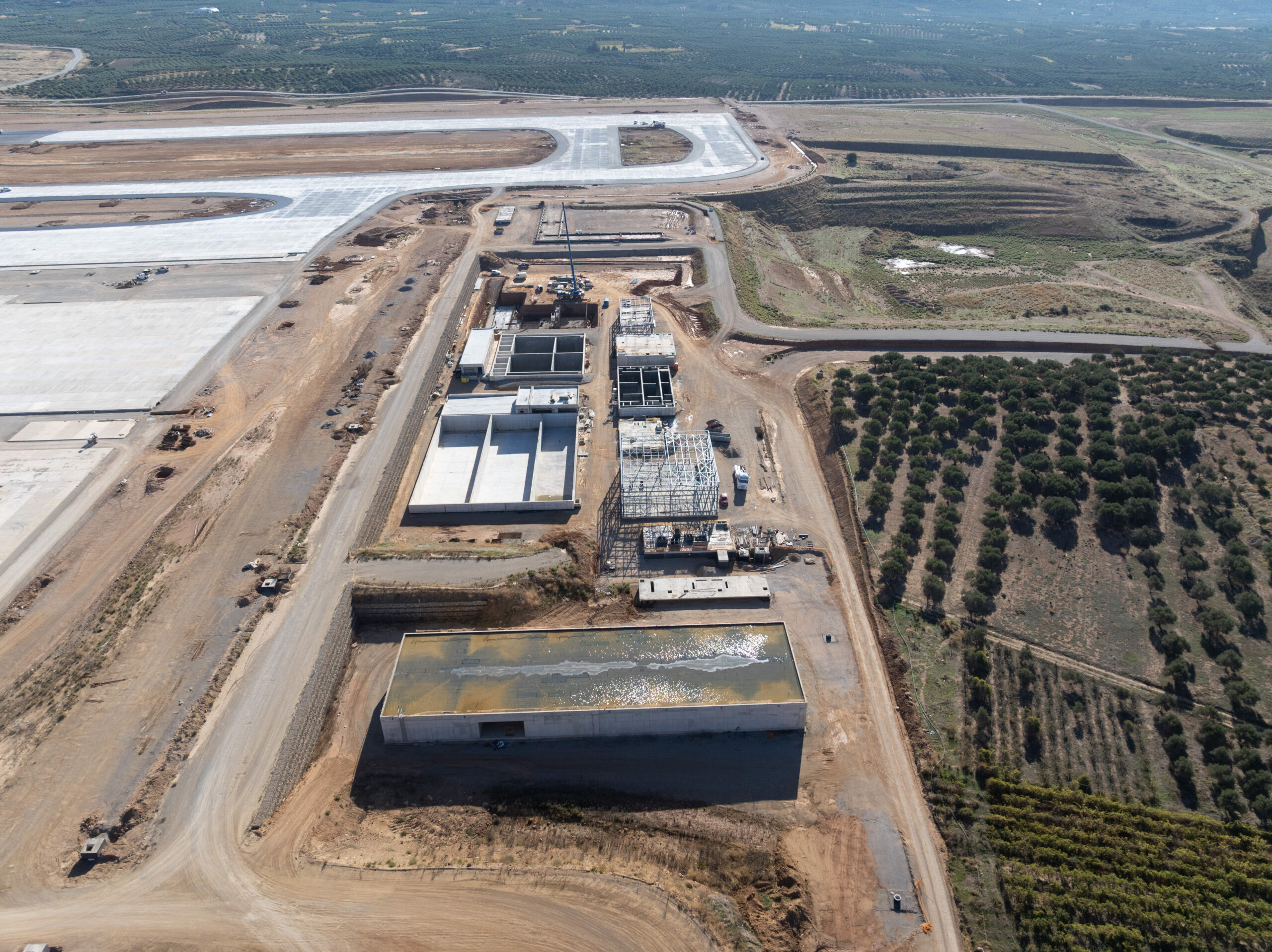 Σε ό,τι αφορά την πρόοδο της κατασκευής, τείνουν προς την ολοκλήρωσή τους οι κύριες κατασκευαστικές εργασίες του αεροδρομίου, το οποίο θα εκτείνεται σε 6.030 στρέμματα, με την πρόοδο υλοποίησης να ξεπερνάει το 65% έως την 31/10/2025. Οι φέροντες οργανισμοί του πύργου ελέγχου και του Αεροσταθμού, καθώς και της πλειονότητας των υπολοίπων κτιρίων έχουν ολοκληρωθεί. Επίσης: