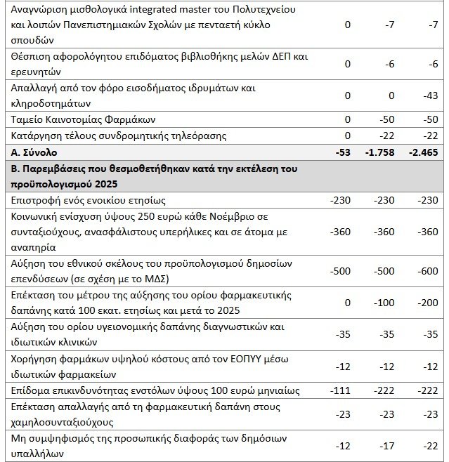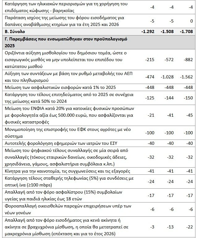 Δημοσιονομικές παρεμβάσεις 2025 και 2026