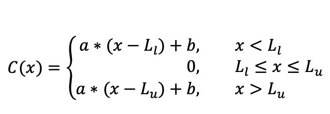 C(x): Μοναδιαίο κόστος του εκάστοτε μηχανισμού αναπροσαρμογής χρέωσης του κάθε μεγέθους x.