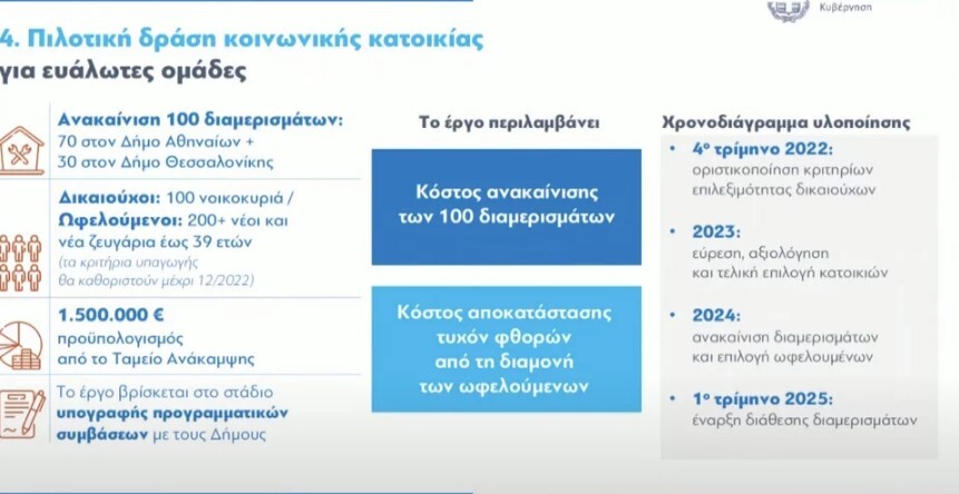 Επίσης, ευρωπαϊκά κονδύλια (Ταμείο Ανάκαμψης και ΕΣΠΑ) ύψους 200 εκατ. ευρώ θα διατεθούν για την αξιοποίηση κενών ιδιωτικών κατοικιών.