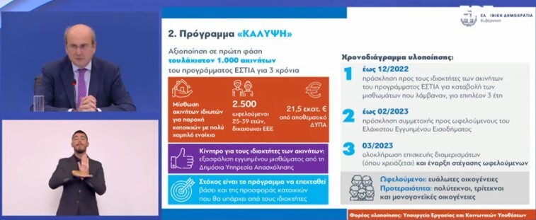 Το πρόγραμμα αυτό αφορά στην αξιοποίηση τουλάχιστον 1.000 ακινήτων του προγράμματος ΕΣΤΙΑ για 3 χρόνια. Θα επωφεληθούν 2.500 νέοι και ζευγάρια. Το κράτος θα μισθώσει ακίνητα ιδιωτών και θα τα παραχωρήσει σε δικαιούχους του Ελάχιστου Εγγυημένου Εισοδήματος με πολύ χαμηλό ενοίκιο.